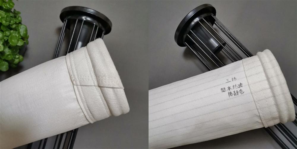 對除塵濾袋采用碳氟樹脂和PTFE浸漬處理的防油防水處理,對含有濕氣的氣體(尤其對吸水性、潮解性粉塵) 除塵濾袋的表面更易捕集粉塵,避免和減輕糊袋的現(xiàn)象發(fā)生。