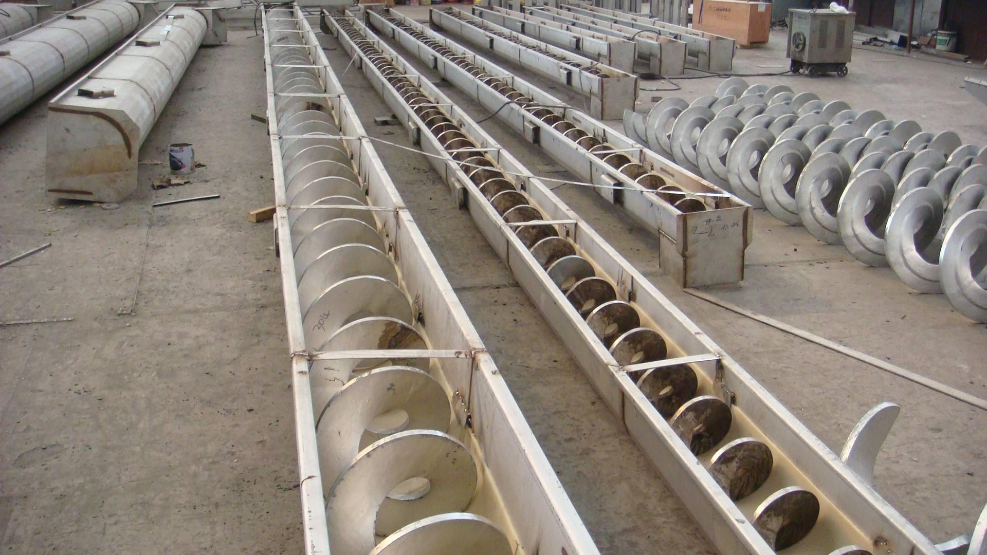 無軸螺旋輸送機代替了傳統(tǒng)的膠帶式輸送機,它具備了:維修簡單、污染少、噪音小、工作效率高等優(yōu)點。迅速被人們重視。不但能運送老式設備無法運送的輕軟、細小、帶狀漂浮物質(zhì),而且還能將砂水分離,污物壓榨。外形美觀、結(jié)構合理。但是,該設備的主軸是一根無軸的螺旋,制作難度較大,以前國內(nèi)一直依賴進口,河北品丞經(jīng)過多年的試驗,成功研制出我們自己的無軸螺旋,我廠生產(chǎn)的無軸螺旋輸送機輸送量大、耗能少、結(jié)構簡單安裝維護方便。